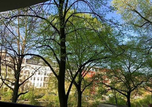 Highlight: Der schöne Balkon mit freiem Blick ins Grüne und auf den idyllischen Landwehrkanal - ein echtes Juwel mitten in der Stadt.