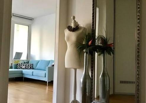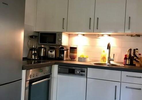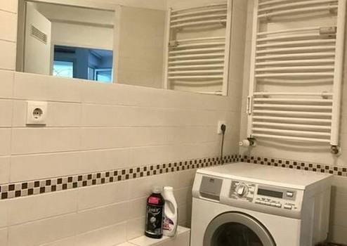 Die Wohnung ist mit einer Einbauküche, einem Waschtrockner sowie maßgeschneiderten Jaloucity-Jalousien ausgestattet.