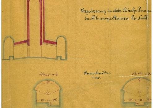 Unterhalb der Anlage befindet sich teilweise ein weitläufiger Felsenkeller (170 m), 1850 genutzt als Bierlager und später zusätzlich als Eiskeller (Denkmalschutz).