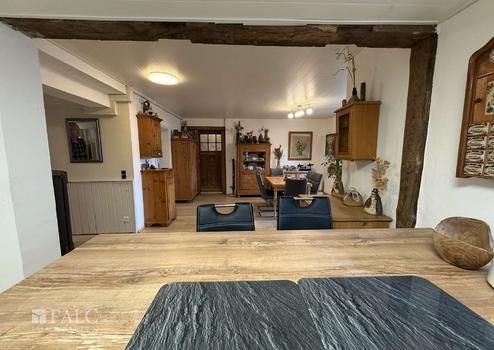 Beim Betreten dieses einladenden Hauses aus dem Jahr 1980 gelangen Sie zunächst in einen großzügigen Eingangsbereich, von dort aus ist der offene Essbereich nahtlos mit der modernen Küche verbunden, die durch ihre offene Gestaltung den Blick in den Garten freigibt. Diese Raumaufteilung fördert ein kommunikatives Miteinander und ist ideal für gesellige Abende mit Familie und Freunden. Die Küche ist funktional ausgestattet und bietet ausreichend Platz für kulinarische Aktivitäten oder einen langen Abend mit Freunden vor dem Kamin.