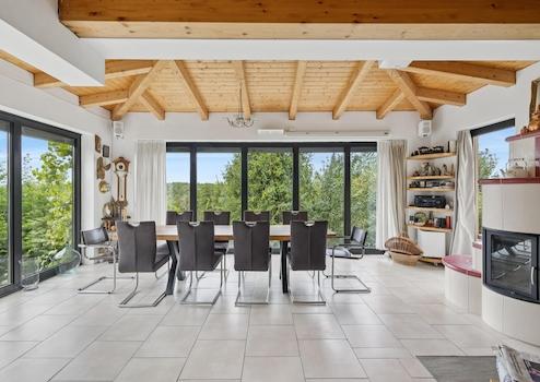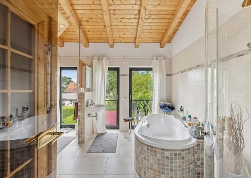 Terrasse, Wintergarten, Garten, Keller, Vollbad, Duschbad, Sauna, Einbauküche, Gäste-WC, Kamin, Barrierefrei, Fliesen