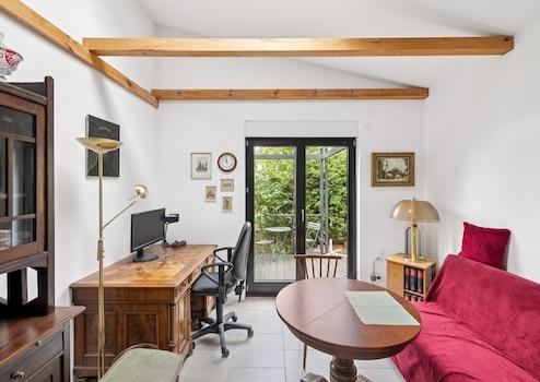 Das Gartenwohnhaus verfügt über einen Schlafraum, ein Duschbad und einen Wohnraum mit halboffener Küche auf ca. 30 qm.