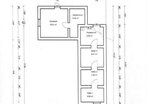 Das Haupthaus verfügt über ca. 180 qm Wohnfläche, aufgeteilt in fünf Räume, sowie zwei Bäder. Das Wohnzimmer geht in die halboffene Küche und den Wintergarten über. Auf jeder Etage befinden sich jeweils ein Bad und weitere Räume. Der Keller besteht aus mehreren Räumen mit einer Nutzfläche von ca. 54 qm.