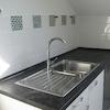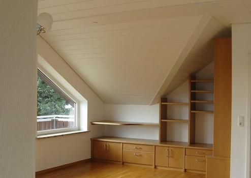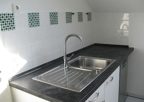 In der Küche ist noch Platz für einen Tisch und Stühle und es gibt einen kleinen Abstellraum (in der Dachschräge).