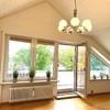 Die Deckenhöhe im Wohnzimmer hat 3,50 m. Dadurch wirkt das Zimmer großzügig.