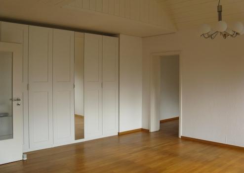 Das Wohn- und Schlafzimmer verfügen über ein schönes Parkett.
