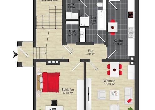 Zur Wohnung gehört ein eigenes Kellerabteil. Darüber hinaus steht den Bewohnern ein gemeinschaftlicher Fahrradraum zur Verfügung, der bequem im Haus erreichbar ist.