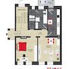 Die separate Küche ist funktional geschnitten und bietet ausreichend Platz zum Kochen und Genießen. Das Schlafzimmer bietet mit seiner klaren Struktur Raum für individuelle Einrichtungsideen und ist vom Wohnzimmer aus begehbar.