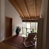 Vom Wohnzimmer aus führt eine Treppe mit Holzstufen ins Obergeschoss. Hier wird man von der gemütlichen Galerie mit offenem Sichtdachstuhl in Empfang genommen. Von hier aus gelangt man in das geräumige Badezimmer mit Dusche und Badewanne, in ein Extra WC und in drei Schlafzimmer, die auch als Büro oder Gästezimmer genutzt werden können.