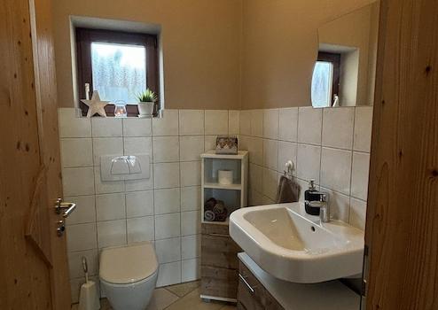 Der Eingangsbereich begrüßt mit einer großen Garderobe. Dazu gehören ein extra Raum für Schuhe ect. und ein Gäste-WC.