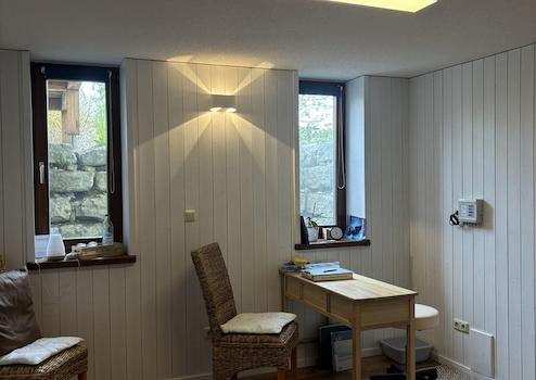 Vom Wohnraum aus gelangt man durch eine Terrassentüre, zum ehemals zweiten, Wintergarten. Dieser wurde 2023 liebevoll zu einem zusätzlichen Wohlfühlraum mit isoliertem Dach mit zwei Dachfenstern ausgebaut. Seitdem lässt er sich Sommer wie Winter z.B. als zusätzliches Wohnzimmer oder Rückzugsoase nutzen.