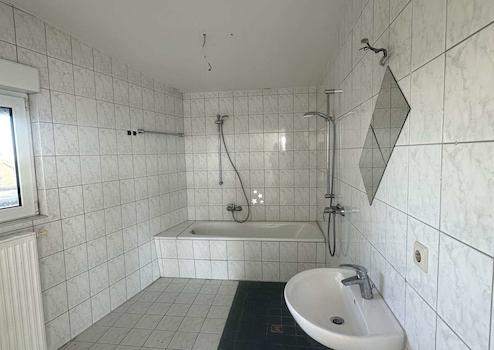 - Laminat im Wohnbereich, Fliesen in Bad und Küchenbereich