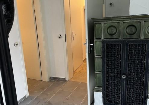 Eine Woheinheit DG ist derzeit vermietet mit drei Zimmer, Einbauküche, Badezimmer mit Dusche und Badewanne, zwei Balkone, Gartenschuppen und Stellplatz.