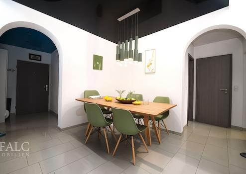 Die großzügige 4-Zimmer-Wohnung mit ca. 96 m² Wohnfläche überzeugt durch ihren durchdachten Grundriss und eine gelungene Kombination aus klassischem Charme und moderner Ausstattung. Die Wohnung befindet sich im 5. Obergeschoss eines gepflegten Mehrfamilienhauses mit Aufzug.