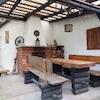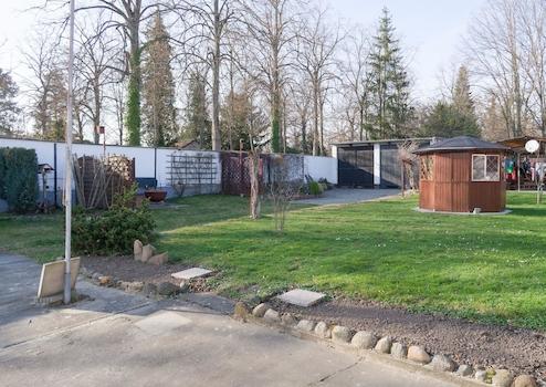 Das Grundstück bietet zudem mehrere einladende Sitzecken, die teilweise überdacht sind, sowie Gartenhäuser, die für entspannte Stunden im Grünen sorgen. Der gepflegte Garten rundet das Gesamtbild dieser großzügigen Immobilie perfekt ab.