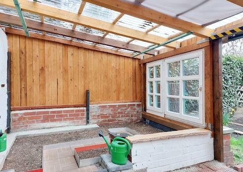 Das Anwesen verfügt über zwei geräumige Garagen mit einer Torbreite von ca. 3,30 m und einer Höhe von ca. 2,98 m, die ausreichend Platz für größere Fahrzeuge, Motorräder oder Werkzeuge bieten. Dazu kommt ein umfangreiches Nebengelass, bestehend aus einem Waschhaus, einer Werkstatt, einem Geräteschuppen, einem Lagerraum sowie einem gemütlichen Kaminzimmer, das als Party- oder Hobbyraum genutzt werden kann. Direkt an das Nebengebäude schließt sich ein 19 m² großer Carport an, der zusätzlichen Stellplatz bietet.