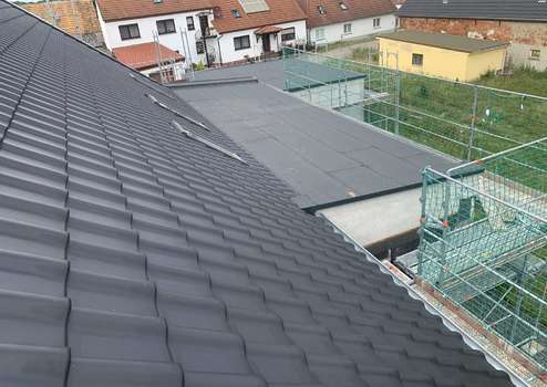 - Dachdeckung mit Brass Rubin V9 Ziegeln aus gebranntem Ton