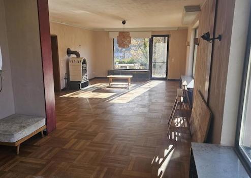 EG: Eingangsbereich, Gäste-WC, Zimmer, Hauswirtschaftsraum, Küche, großes Wohnzimmer mit Essbereich, Terrasse. Ehemalige Schwimmhalle (ca. 100 m²).