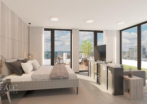 Neben der modernen Ausstattung überzeugt das Gebäude auch durch seine hochwertige technische Infrastruktur. Eine zeitgemäße Daten- und Stromversorgung, energieeffiziente Heiz- und Kühlsysteme sowie ein außenliegender Sonnenschutz schaffen beste Voraussetzungen für komfortables Wohnen. Durch die extensiv begrünten Dachflächen und die Integration von Photovoltaik wird zudem ein Beitrag zu Nachhaltigkeit und Energieeffizienz geleistet.