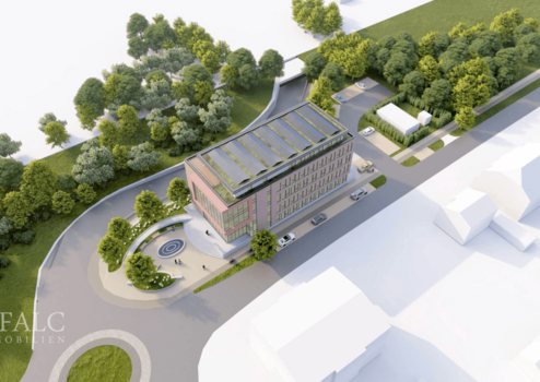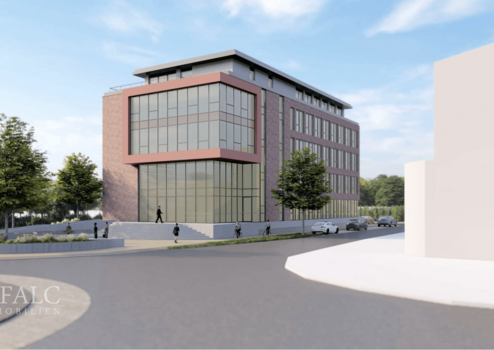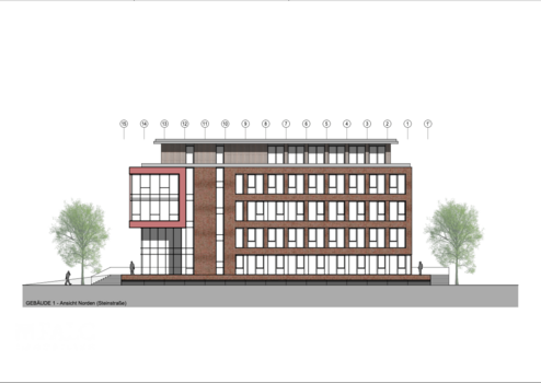 Umfeld & Image: Durch das geplante architektonische Gesamtkonzept entsteht eine eigenständige, moderne Adresse mit repräsentativem Eingang, hochwertiger Fassadengestaltung und sichtbarer Präsenz an der Steinstraße. Das entstehende Umfeld wird durch durchdachte Vorplatz- und Grünflächenplanung sowie eine klare Wegeführung aufgewertet — ideal für Unternehmen, die hochwertige, flexible Büroflächen in einer gut erreichbaren, städtischen Lage suchen.