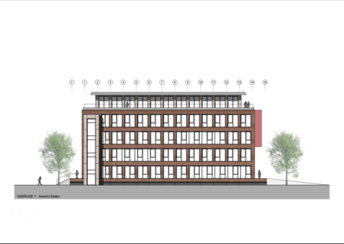 In der Steinstraße in Gronau entsteht bis 2026 ein modernes Gebäude mit Monteurwohnungen, das mit klarer Architektur, großzügigen Grundrissen und zukunftsweisender Ausstattung überzeugt. Der Neubau umfasst vier Vollgeschosse sowie ein Staffelgeschoss und wird durch eine Tiefgarage und zusätzliche Außenstellplätze ergänzt. Auf einer Grundstücksfläche von rund 2.130 m² entsteht so ein repräsentativer Standort, der den Anforderungen zeitgemäßen, komfortablen Wohnens für Monteure und Berufspendler gerecht wird.