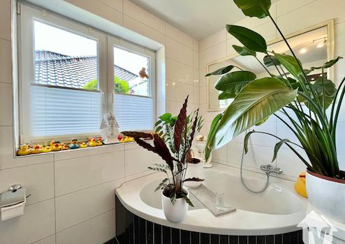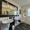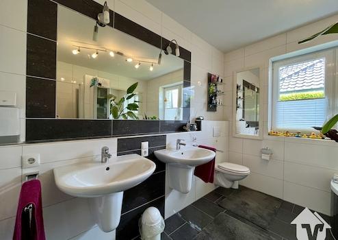 - Badezimmer mit Dusche, Badewanne und Doppelwaschbecken