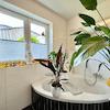 Der private Bereich des Hauses umfasst zwei gut geschnittene Schlafzimmer, sowie ein großzügiges Badezimmer mit Dusche, Badewanne und Doppelwaschbecken.