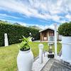 Eine überdachte Terrasse lädt zu gemütlichen Stunden im Freien ein, während das Gartenhaus mit Brunnenanschluss zusätzlichen Charme und Funktionalität bietet.