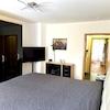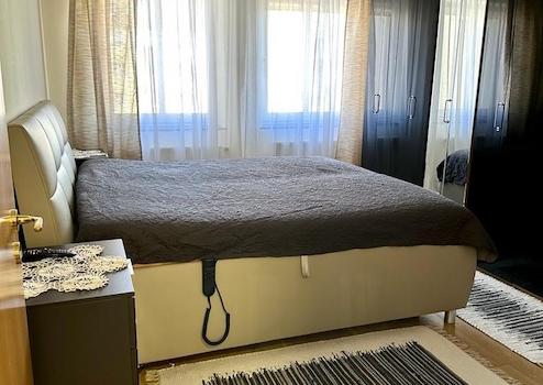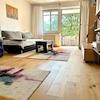 Holzparkett im Wohnzimmer und Schlafzimmer.
