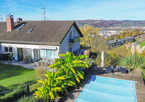 Panorama Immobilie mit Pool und Einliegerwohnung auf dem Hünerberg