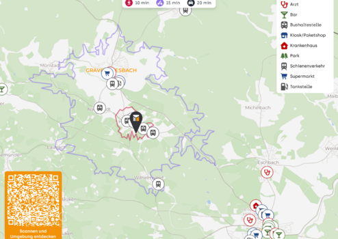 Die Immobilie in der Hauptstraße von Grävenwiesbach Hundstadt bietet eine hervorragende Anbindung an den öffentlichen Nahverkehr. Nur etwa 175 Meter entfernt befindet sich die U-Bahn-Station Hundstadt, die Ihnen eine schnelle Verbindung in die umliegenden Städte ermöglicht. Auch die Bushaltestelle Hundstadt Ortsmitte ist in ca. 70 Metern fußläufig erreichbar, was den täglichen Pendelverkehr erleichtert.
