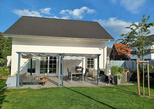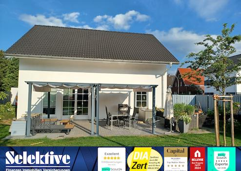 Dieses moderne Einfamilienhaus in ruhiger Lage von Neukirchen-Vluyn, im Ortsteil Neukirchen, bietet ein ideales Zuhause für Familien oder Paare, die Wert auf Komfort, Energieeffizienz und eine angenehme Wohnatmosphäre legen. Das im Jahr 2016 erbaute KfW-Effizienzfertighaus befindet sich in einem neuwertigen Zustand. Lediglich kleine Schönheitsarbeiten sind noch zu erledigen. Auf einer Wohnfläche von rund 114 m² und einem Grundstück von 499 m² überzeugt die Immobilie durch eine durchdachte Raumaufteilung und gute Ausstattung und eine großzügige Außenanlage.