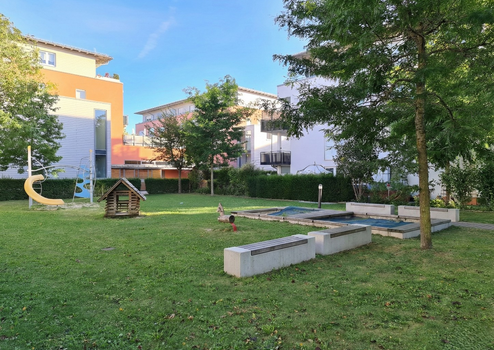 Die Umgebung ist geprägt von modernen Neubauten, gepflegten Parkanlagen und kurzen Wegen zu Naherholung und Natur – eine Lage mit hoher Lebensqualität und optimaler Anbindung.
