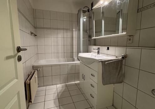 Beim Betreten der Wohnung öffnet sich ein freundlicher, länglicher Flur, von dem aus Sie zunächst das Badezimmer auf der linken Seite und die praktische Abstellkammer gegenüber erreichen. Ein Stück weiter befindet sich auf der linken Seite ein separates Gäste-WC.