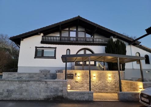Terrassen und Balkone: Neben der Hauptterrasse im EG gibt es eine weitere Terrasse im UG sowie Balkone bei der Einliegerwohnung.