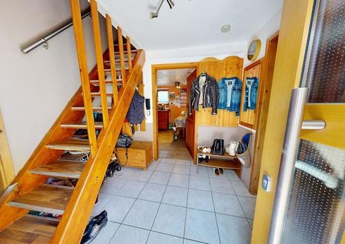 Das Haus ist nicht unterkellert, im EG befinden sich ein neues Duschbad mit Waschmaschinenanschluss, das Wohn-Esszimmer, sowie die Küche mit Speisekammer.