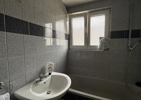 Die Erdgeschosswohnung überzeugt durch eine durchdachte Raumaufteilung. Sie verfügt über ein Schlafzimmer, ein Kinderzimmer, ein Esszimmer sowie ein großzügiges Wohnzimmer – letzteres befindet sich im Anbau von 1973 und bietet direkten Zugang zur großen Sonnenterrasse mit schönem Blick in den Garten. Die Küche mit angrenzender Abstellkammer, ein Tageslichtbad mit Badewanne sowie ein separates WC runden das Raumangebot auf dieser Etage ab.