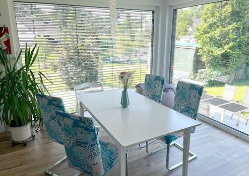 Das Haus ist technisch auf dem neuesten Stand: KfW-55-Standard, Nibe F750 Wärmepumpe, Photovoltaikanlage, Fußbodenheizung, kontrollierte Wohnraumlüftung und ein voll integriertes Loxone-Smart-Home-System zur Steuerung von Licht, Rollläden, Tor, Alarmanlage und PV-Monitoring.