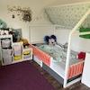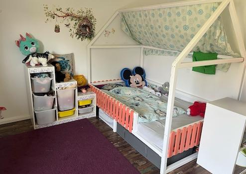 Der Garten ist pflegeleicht angelegt und bietet neben einer großen Terrasse auch einen liebevoll gestalteten Kinderbereich mit Spielhaus, Rutsche und Trampolin. Ein besonderes Highlight ist der beheizte Whirlpool auf der Terrasse – perfekt zum Entspannen zu jeder Jahreszeit.