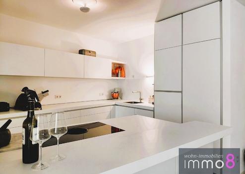 Im Mittelpunkt steht der weitläufige Wohn-Ess-Kochbereich mit einer edlen Bulthaup Küche. Die südwestliche Loggia lädt zum Verweilen im Freien ein. Die Wohnung verfügt über Fußbodenheizung, edle Böden, zwei Bäder – ein Masterbad und ein Duschbad – sowie ein flexibles Zimmer und einen Abstellraum mit Waschmaschinenanschluss.