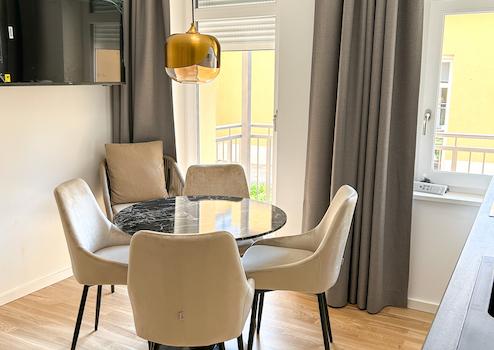 Diese stilvolle, vollmöblierte Wohnung im pulsierenden Herzen von Leipzig-Lindenau vereint urbanes Leben mit professionellen Ansprüchen. Das Apartment in einem liebevoll sanierten Altbau mit charaktervoller Fassade bietet die perfekte Symbiose aus privatem Wohlfühlraum und effizientem Arbeitsplatz. Der durchdacht gestaltete Hauptraum überzeugt durch optimale Raumnutzung und behagliche Atmosphäre. Ein komfortables Doppelbett sorgt für erholsame Nächte, während eine zusätzliche Schlafgelegenheit flexibel Platz für Besucher schafft. Ein ergonomisch positionierter Arbeitsplatz mit großzügigem Schreibtisch bietet ausreichend Raum für technische Ausstattung und Arbeitsmaterialien. Eine stabile Breitband-Internetverbindung ist bereits vorhanden und betriebsbereit - ohne lästige Anmeldeprozeduren oder Wartezeiten. Dies gewährleistet reibungsloses digitales Arbeiten für Videokonferenzen und Online-Meetings. Die moderne Küchenzeile ist komplett ausgestattet mit Herd, Backofen, Mikrowelle, Spülmaschine und Kühlschrank. Der Essplatz ermöglicht entspannte Mahlzeiten oder informelle Geschäftsgespräche. Für entspannte Abendstunden steht ein Smart-TV mit Streaming-Zugang bereit. Das zeitgemäß ausgestattete Duschbad mit komfortabler Duschzone rundet das Angebot ab. Leipzig-Lindenau gilt als einer der dynamischsten Stadtteile Leipzigs mit hervorragenden Verkehrsanbindungen ins Zentrum und zu Geschäftsvierteln. Die lebendige Nachbarschaft bietet zahlreiche Restaurants, Cafés und Einkaufsmöglichkeiten. Ideal für Geschäftsreisende, Remote-Worker und alle, die temporär eine vollausgestattete Unterkunft mit professionellem Ambiente suchen.