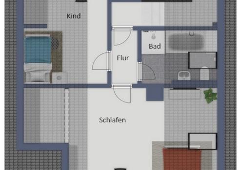 - Wohnfläche OG/DG ca. 95 m² (4 ZK 2x Bad/WC, Dachterrasse)