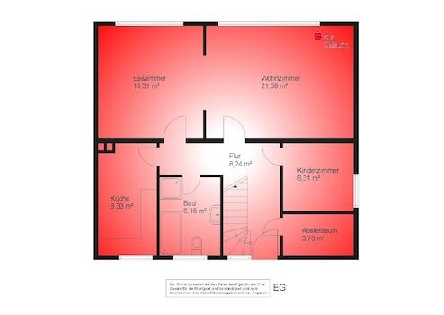 Energie: bedarfsorientiert, 154,4 kWh/(m²a), 37,9 kg/(m²a), Erdgas, Bj. ca. 1969