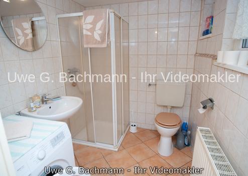 Ein angrenzender Flur führt Sie weiter zum Duschbad, das mit einem WC, einem Handwaschbecken und einem Waschmaschinenanschluss ausgestattet ist.