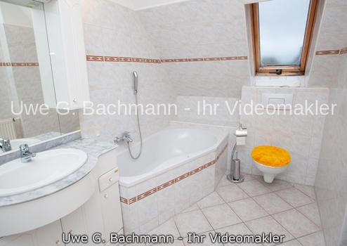 Ergänzt wird diese Etage durch ein weiteres Badezimmer, das mit einer Badewanne mit Ablagemöglichkeiten, einem WC und einem Spiegelschrank ausgestattet ist.