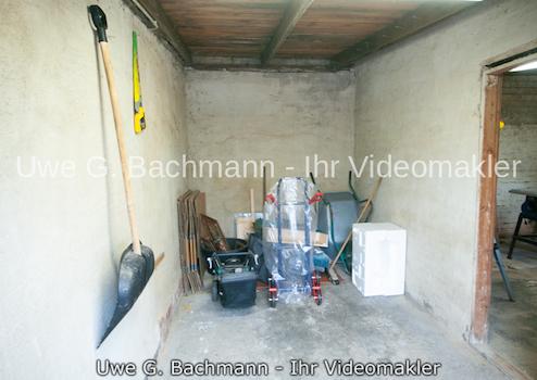 Auf dem Grundstück befindet sich eine kleine massive Garage für Mopeds und Fahrräder. Die Garage hat ein elektrisches Rolltor. Direkt daneben befindet sich eine Werkstatt mit Werkbank – ideal für Bastler und Handwerker. Die gepflasterte Zufahrt mit Pkw-Stellplatz befindet sich direkt am Haus und ermöglicht komfortables Parken auf dem eigenen Grundstück.