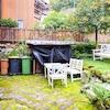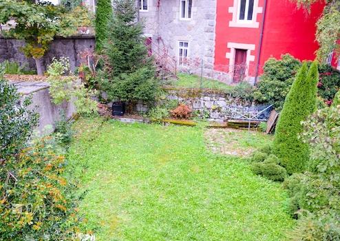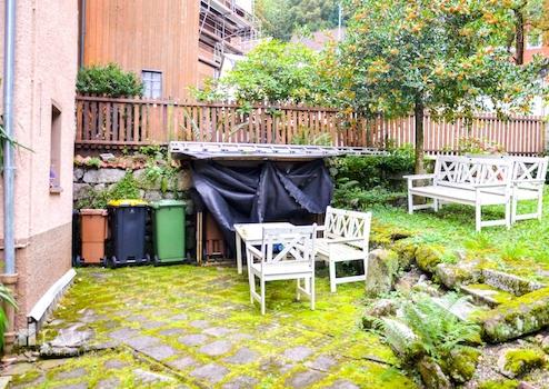 - Kleiner, terrassenartig angelegter Gartenbereich hinter dem Haus