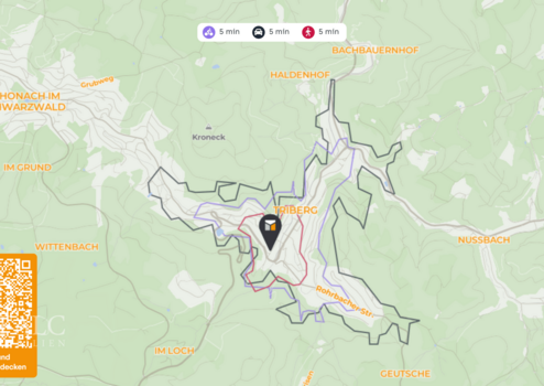 Geschäfte des täglichen Bedarfs, Ärzte, Schulen, Kindergärten, Gastronomie, Bahnhof und die bekannten Triberger Wasserfälle sind in wenigen Minuten erreichbar.
