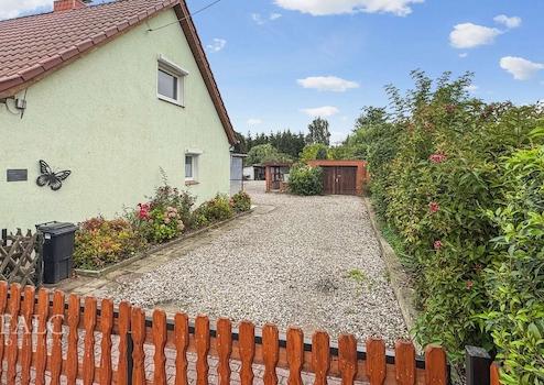 Das Haus befindet sich auf einem beeindruckenden, vollständig eingezäunten Grundstück mit einer Größe von 1.958 m², das sich ideal für Tierhaltung eignet. Die Lage am Feldrand sorgt nicht nur für herrliche Weitblicke, sondern bietet auch eine ruhige und naturnahe Wohnatmosphäre. Neben dem Haupthaus stehen ein großer Stall, ein weiteres kleineres Stallgebäude sowie ein älteres Gewächshaus zur Verfügung. Eine Garage und eine Waschküche im Nebengebäude ergänzen das großzügige Platzangebot.
