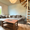 Das Innere des Hauses überzeugt durch eine einladende Raumaufteilung. Im Erdgeschoss befindet sich eine große, helle Landhausküche mit direktem Zugang zum Hof, die zum Mittelpunkt des Familienlebens werden kann. Zwei Tageslichtbäder mit Badewanne stehen ebenfalls im Erdgeschoss zur Verfügung. Eine offene Wendeltreppe führt ins Obergeschoss, wo weitere Zimmer vielseitige Gestaltungsmöglichkeiten bieten. Ein Zimmer im Erdgeschoss ist sanierungsbedürftig und verfügt über einen charmanten Kachelofen, der für eine gemütliche Atmosphäre sorgt.